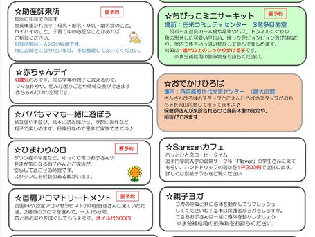 また子育てに関する相談や子育てに役立つ講座やイベントもおこなっています